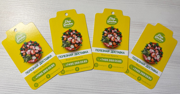 Чтобы напечатать партию бирок в количестве 100 – 200 штук, требуется не более трех часов. Она может быть изготовлена с логотипом либо названием компании заказчика. Сегодня печать бирок для фирменных товаров является достаточно востребованным видом полиграфической продукции. Данные изделия указывают на составляющие элементы товара, его стоимость, а также предоставляют другую необходимую информацию. Их используют для маркировки товаров в продуктовых отделах, специализированных магазинах обуви и одежды (для маркировки носков и другого текстиля), ювелирных салонах.